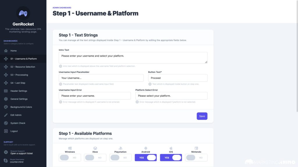 Meet BS - GenRocket landing page, based on our new GenRocket type of admin panel which allows you to edit all aspects of the landing page settings, directly through admin user interface without having to edit any code. Visitor-flow is based on 4 steps with smoothly animated transitions, which contain username & platform entry along with selection of 4 amount options for 2 resources. All entries are then displayed in a dynamic animation proccessing.